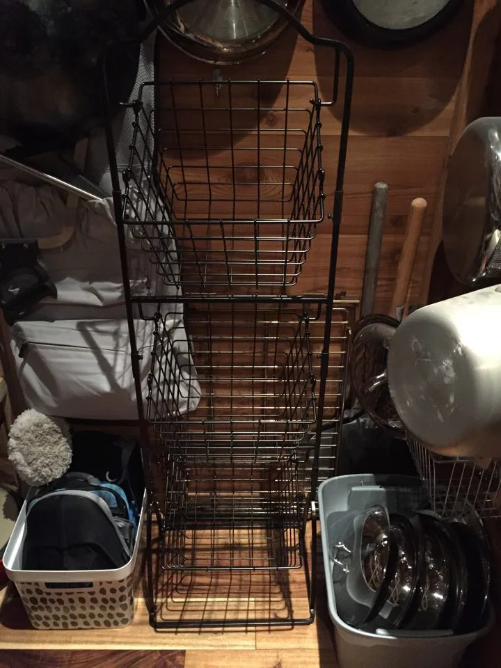 She also added tiered baskets for produce and additional bins for her son's lunchboxes and another one for more pot lids (did I mention she's a professionally trained chef?).
